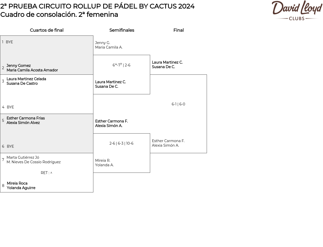 Cuadro de consolación 2ª femenina