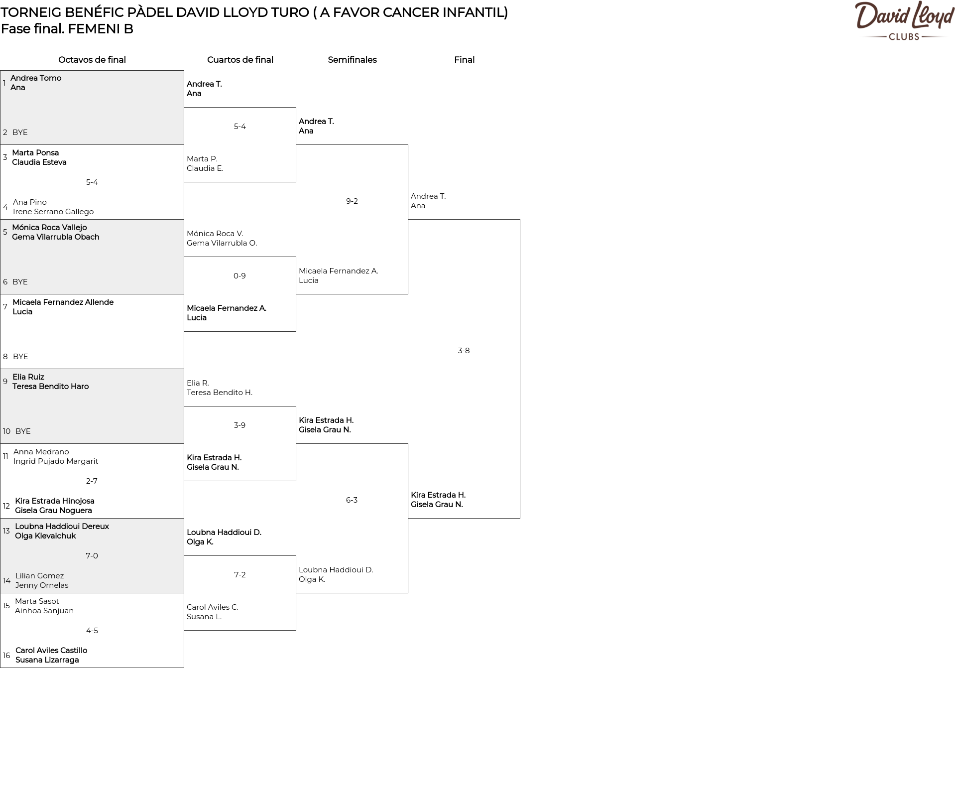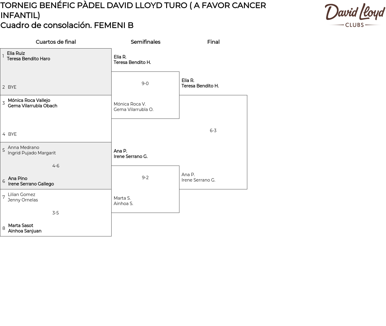 TORNEIG BENÉFIC PÀDEL DAVID LLOYD TURO ( A FAVOR CANCER INFANTIL)